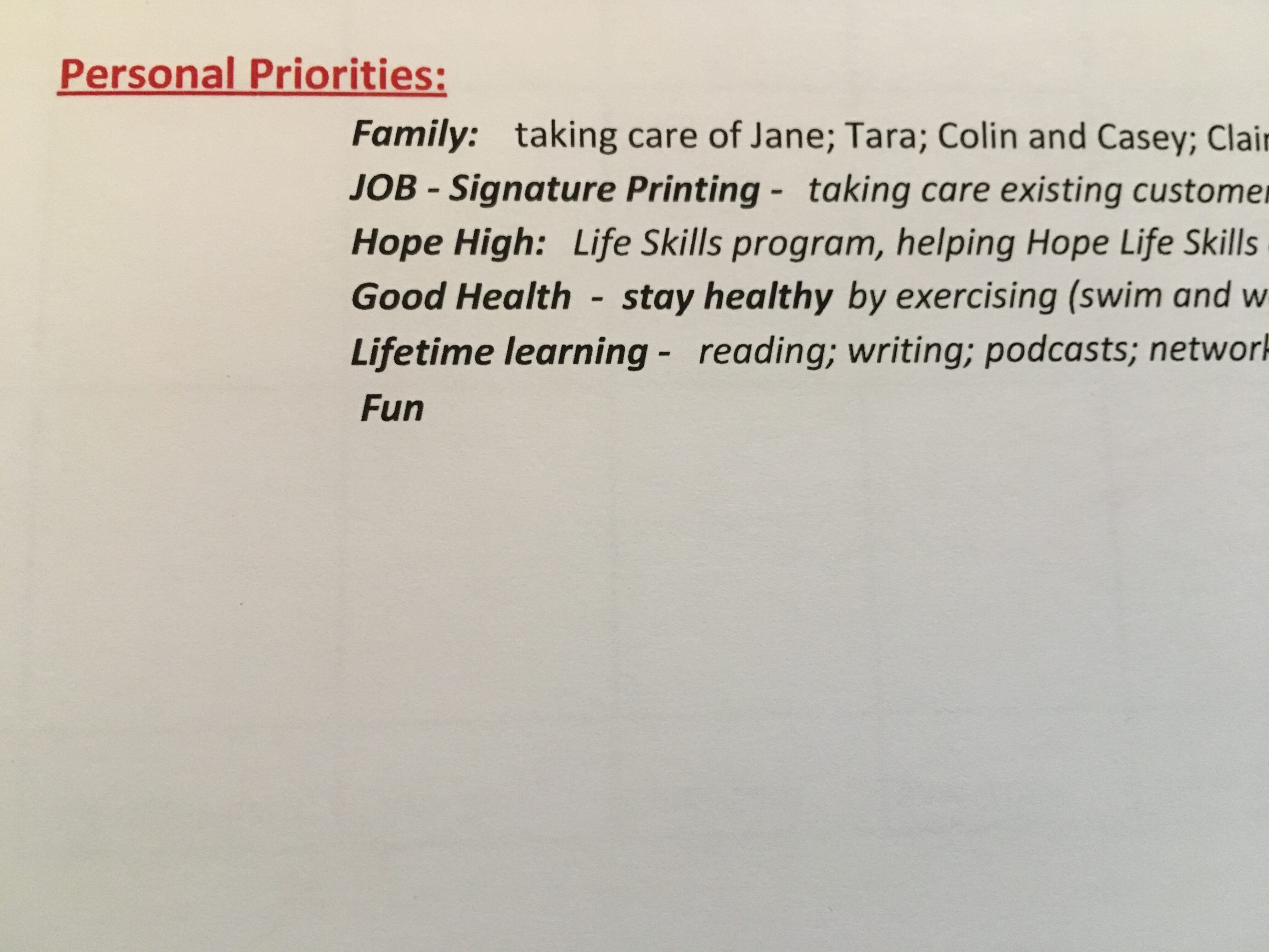 If we claim we have priorities in our lives, then we need to make sure we dedicate time each week to support and care for these priorities.